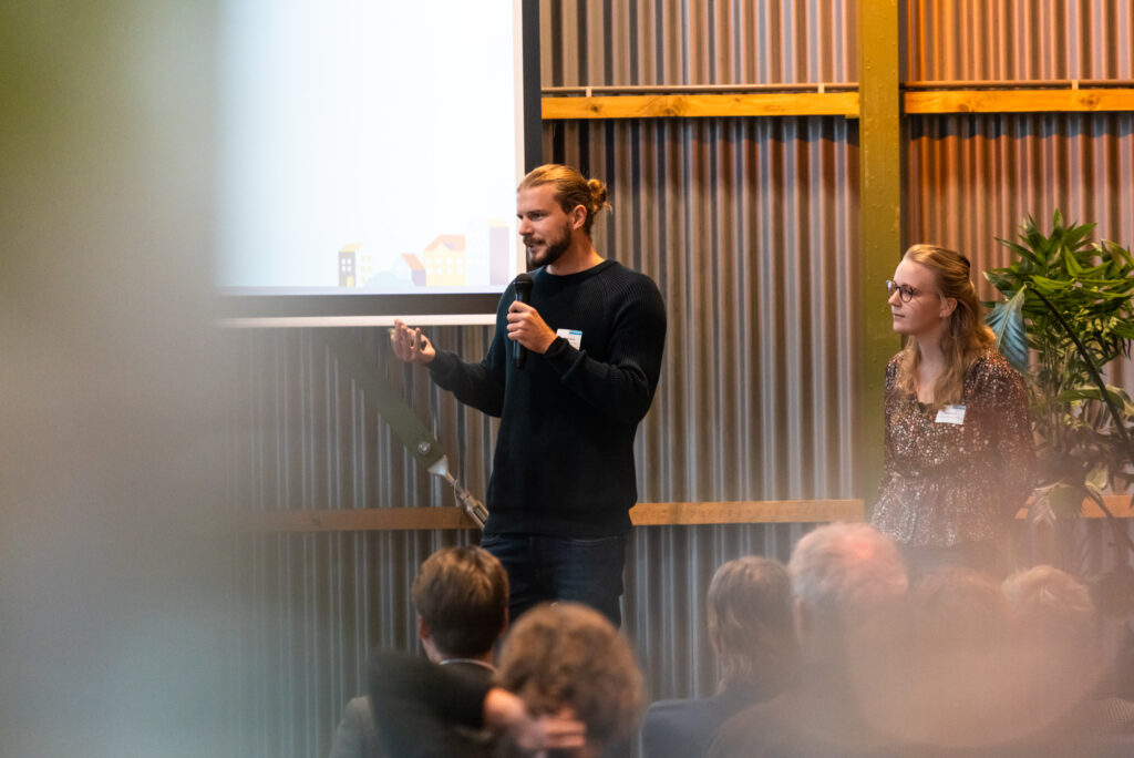 Jelmer Steenbeek en Maaike Kunst van Ohpen Ingenieurs trapten af met hun presentatie over YIMBY; een serious gaming app met als doel om inwoners van steden/dorpen meer mee te laten participeren in het inrichten van hun omgeving. Ze zitten in de testfase en hebben behoefte aan feedback over wat er ontbreekt in de app en het aanscherpen van de klimaatscore-functie in de app.